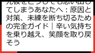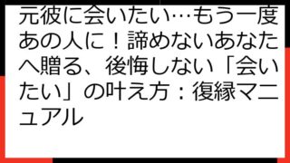 元彼から連絡がこない…その深層心理と、あなたができること 別れた元彼から連絡がこない、それはとても辛い状況ですよね。 「どうして連絡がこないんだろう」「私のことはもう忘れてしまったのかな」と、不安な気持ちになるのは当然です。 この記事では、...