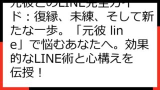 元彼が「飲みに行く」と言った時の心理と最適な対応策:復縁、友達、そして新たな一歩へ この記事では、「元彼 飲みに行く」という状況に直面した際に、あなたがどのように考え、どのように行動すれば良いのかを、専門的な視点から解説します。 元彼の行動...