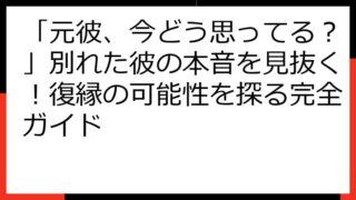 元彼からの連絡がない… 連絡を諦める前に知っておくべきこと、そして次の一歩 別れた後、元彼から連絡が来ないと、不安になったり、モヤモヤした気持ちになるのは当然です。 「どうして連絡が来ないんだろう」「もう終わったのかな」と、色々な思いが頭を...