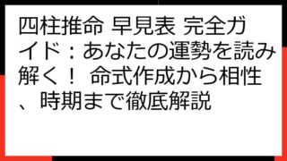 【四柱推命 五行 無料鑑定】あなたの運勢を読み解く!基礎知識から活用術まで徹底解説 四柱推命に興味をお持ちのあなたへ、このブログ記事へようこそ! 四柱推命は、生まれた年、月、日、時の干支から、あなたの運勢や性格、才能を読み解く占術です。 五...