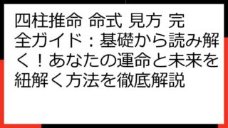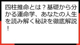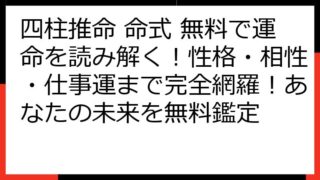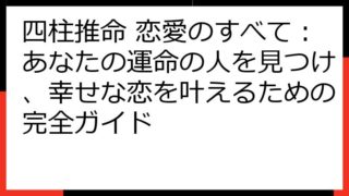 四柱推命で読み解く!あなたの恋愛運命 無料鑑定と相性占い 四柱推命は、あなたの生年月日と生まれた時間から、性格や運勢を読み解く占いです。 このブログ記事では、四柱推命を使った恋愛占いの基礎から、無料鑑定であなたの恋愛運をアップさせる方法まで...