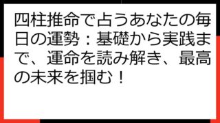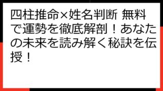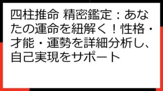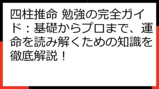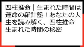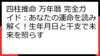 四柱推命 命宮:あなたの人生の羅針盤を読み解く この記事では、四柱推命における「命宮」に焦点を当て、その深い意味と活用方法を徹底的に解説します。 四柱推命の基礎知識から始まり、命宮の算出方法、そして12の命宮それぞれの性格的特徴を詳しく掘り...