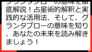 グランタブロー最終解読:象徴カード4枚が明かす未来 この記事では、グランタブロー占いの奥深さを、特に最後の4枚に焦点を当てて解説します。 グランタブローの象徴カードが持つ意味、そして、それらをどのように読み解くのかを詳しく解説します。 未来...