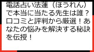 電話占い法蓮(ほうれん)完全ガイド:予約・料金・支払い方法を徹底解説 電話占い法蓮(ほうれん)をご利用の皆様、または、これから利用を検討されている皆様へ、この記事では、電話占い法蓮(ほうれん)を最大限に活用するための、予約方法、料金体系、そ...