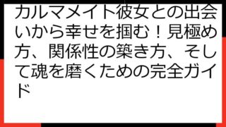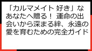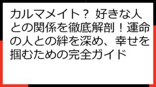 カルマメイトと出会う!同性との魂の繋がりを深めるための完全ガイド この記事では、「カルマメイト 同性」というキーワードに焦点を当て、同性のカルマメイトとの出会い方、関係性の深め方、そしてそのスピリチュアルな意味合いについて掘り下げていきます...
