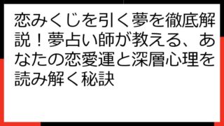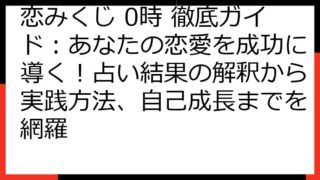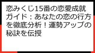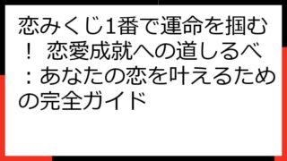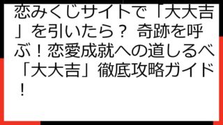 恋みくじ1番を徹底解剖! 運命の出会いを引き寄せるための完全ガイド この記事では、「恋みくじ1番」について深く掘り下げていきます。 あなたは恋みくじ1番に興味があり、その詳細を知りたいと思っていることでしょう。 この記事を読めば、恋みくじ1...