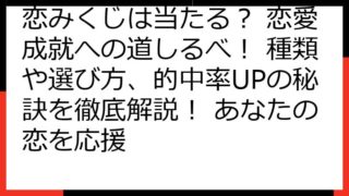恋みくじ一覧 大凶を徹底解剖! 運勢の受け止め方と乗り越え方 この記事では、恋みくじで「大凶」を引いてしまったあなたに向けて、その意味を深く掘り下げ、どのように受け止め、乗り越えていくかについて、専門的な視点から解説します。 恋愛運が低迷し...