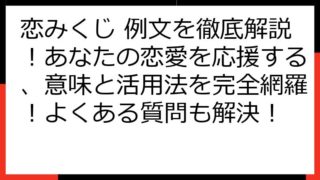 恋みくじ 恋みくじ 例文を徹底解説!あなたの恋愛を応援する、意味と活用法を完全網羅!よくある質問も解決!
