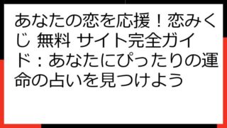 恋みくじ例文完全ガイド:あなたの恋の行方を占う! この記事では、恋みくじの例文を深く理解し、あなたの恋愛をより良いものにするための情報を網羅的に提供します。 恋みくじの種類、解釈の仕方、具体的な例文集、そしてさらなる活用法まで、幅広く解説し...