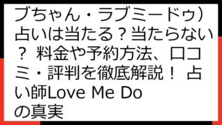 【完全ガイド】Love Me Do(ラブちゃん)占いの個人鑑定 予約方法|当たる占い師の秘密を徹底解説! この記事では、大人気の占い師、Love Me Do(ラブちゃん)こと、ラブミードゥ先生の個人鑑定を受けるための完全ガイドをお届けします...