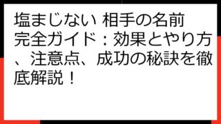 塩まじないでいじめから解放されるために:効果と実践方法、リスクと注意点 いじめは、心に深い傷を残す問題です。 このブログ記事では、塩まじないがいじめ問題の解決にどのように役立つのか、その可能性を探求します。 塩まじないの基礎知識から、実践的...