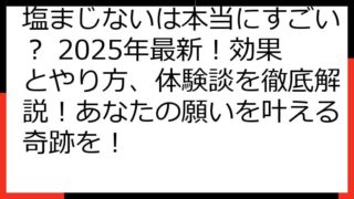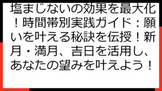 【人間関係のお悩み解決!】塩まじない完全ガイド:書き方・効果・実践例を徹底解説 この記事では、人間関係の悩みを抱えるあなたへ、塩まじないの効果的な使い方を詳しく解説します。 復縁、縁切り、職場の人間関係など、様々な悩みに対する具体的な実践例...