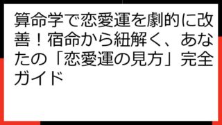 算命学スクール完全ガイド:あなたに最適な学び舎を見つけるための徹底比較 算命学の世界へようこそ! この記事では、算命学スクール選びで迷っているあなたのために、必要な情報を徹底的に解説します。 自分に合ったスクールを見つけ、算命学を深く学び、...