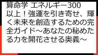 算命学で読み解く!エネルギッシュな女性の秘訣:強運を引き寄せる生き方 この記事では、算命学を通して、エネルギーの高い女性が持つ特徴や、そのエネルギーを最大限に活かすための方法について、詳しく解説していきます。 「算命学 エネルギー 高い 女...