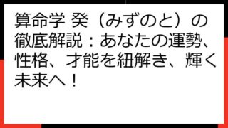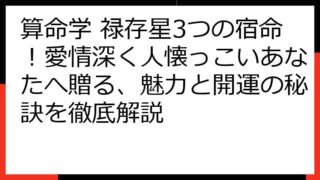 算命学で読み解く「霊感の星」:才能開花への道標 算命学にご興味をお持ちのあなたへ、この記事では、あなたの内なる「霊感の星」に焦点を当て、その才能を最大限に引き出すための道しるべを提供します。 算命学は、生年月日から個人の宿命や運勢を読み解く...
