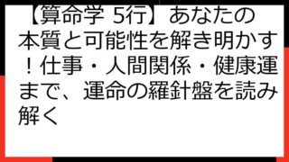 算命学を英語で解説!海外の友人にも魅力を伝えるための専門用語と学習法 算命学という、古来より伝わる東洋の占術に興味をお持ちですか?。 このブログ記事では、算命学の魅力を、言葉の壁を越えて、海外の友人や知人にも伝えたいと考えているあなたのため...