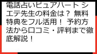 【2024年最新】ピュアハート シエテ先生 予約完全ガイド:料金・支払い・鑑定の流れを徹底解説! 電話占いピュアハートで人気のシエテ先生に、あなたも相談してみたいと思っていませんか? 本記事では、シエテ先生の予約方法、料金体系、支払い方法、...