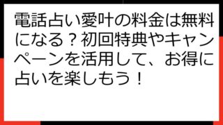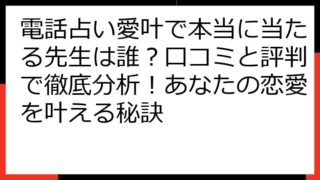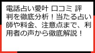 電話占い愛叶 口コミ 評判を徹底解説!当たる先生から料金、注意点まで徹底網羅 電話占い愛叶は、恋愛の悩みを抱えるあなたにとって、本当に頼れる存在なのでしょうか? この記事では、電話占い愛叶の口コミや評判を徹底的に分析し、その真実を明らかにし...