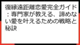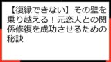 | 「友人」としての距離感 | 重要 | 復縁を焦らず、あくまで自然な関係構築を意識する |