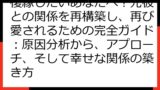 冷却期間の過ごし方から、最初のメッセージ、LINEでのコミュニケーション戦略、そして成功事例まで、復縁を成功させるためのノウハウを余すところなくご紹介します。