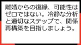| 失った日常への後悔 | 「あの頃の楽しさに戻りたい」という願望を強める | 過去に固執しすぎない。現在の二人に合った新しい関係性を築く視点も持つ。 |