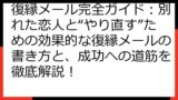 この記事では、復縁占いを最大限に活用し、復縁を成功させるための情報を徹底的に解説します。