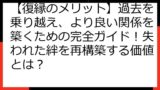 共感力を高め、相手の気持ちを理解することで、より良い関係を築き、復縁への可能性を高めましょう。