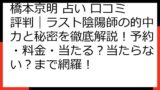 【ラスト陰陽師】橋本京明の結界霊視は当たる? 徹底検証! 占い結果と口コミを徹底分析