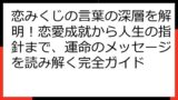 「恋みくじで採用された」という幸運を、あなたの人生全体を彩る、輝かしい未来への「招待状」として受け止め、その可能性を最大限に引き出しましょう。