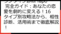 | 活用方法 | 自己分析、他者理解、キャリアプランニング | 恋愛における自己分析、パートナーとの関係性構築、出会いのヒント |