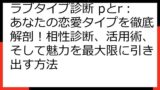 あなたは「ラブタイプ診断 faro」というキーワードで、自分の恋愛傾向や相性を知りたいと考えているかもしれません。