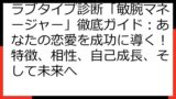 ラブタイプ診断 lape に登場する16のタイプの中から、特に人気の高いタイプをいくつかピックアップし、その特徴を詳しく解説します。