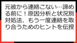 - 改善策: 連絡頻度を控えめにし、相手からの返信を待つ。相手の都合を尊重する。
