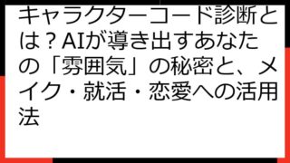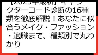 【徹底解説】キャラクターコード診断:16種類のタイプ別特徴と賢い活用法 第一印象を可視化する革新的なツール、キャラクターコード診断。 あなたの「雰囲気タイプ」は、どのように決まるのか。 そして、その診断結果は、メイク、ファッション、就職活動...