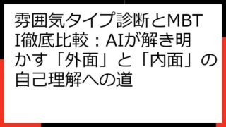 【2025年最新】雰囲気タイプ診断 韓国発!あなたの魅力を解き明かす徹底解説 韓国発のAI診断「雰囲気タイプ診断」、気になっていませんか?。 この診断は、あなたの顔写真と簡単なアンケートで、他者から見た「雰囲気」を16タイプに分類し、ファッ...