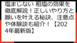 この記事では、塩まじないが持つ本質的な力、呪いとの境界線、そして、効果的に願いを叶えるための実践方法を、徹底的に解説します。