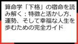 | 出会いの質 | 命式上の星の配置や相性 | どのようなタイプの人物と、どのような目的で出会うのかを理解する |