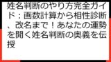このブログ記事では、「姓名判断 良い画数」というキーワードに焦点を当て、あなたの人生をより良いものにするための情報をお届けします。