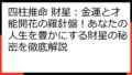 - 時柱に「正財」がある場合:子供は経済的に自立し、親を支える。金銭管理の能力も高い。