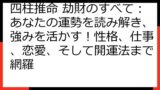 専門家による鑑定を受け、あなたの命式に合わせた具体的なアドバイスを得ることで、より効果的に対策を講じることができます。