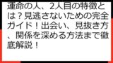 | 感情的な結びつき | 安心感、親近感、共感の形成 | 感情的な「運命」という感覚を優先 |