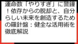 この問題に対処するためには、自分自身の心身の状態を常に意識し、適切なケアを行うことが重要です。