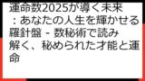 運命数11の持つ直感力、共感力、そして繊細さといった特徴を詳細に解説し、彼らがどのように社会と関わり、自己実現を目指すのかを明らかにします。