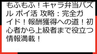 もふもふ!キャラ弁当パズル もふもふ!キャラ弁当パズル ポイ活 攻略:完全ガイド!報酬獲得への道!初心者から上級者まで役立つ情報満載!