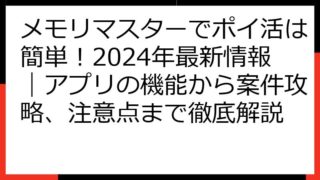 メモリマスターでポイ活は可能?ポイントサイト案件の徹底比較と注意点 「メモリマスター:スペースを管理する」アプリで、ポイ活を検討しているあなたへ、この記事は、メモリマスターのポイ活案件に関する、詳細な情報を提供します。 ポイントサイトでの案...