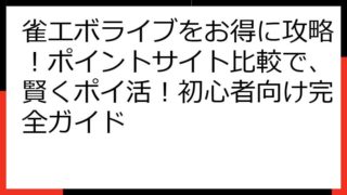 Block Smash(ブロックスマッシュ)でポイ活!ポイントサイト徹底比較ガイド Block Smash(ブロックスマッシュ)というゲームで、お得にポイ活を始めたいあなたへ、この記事は役立ちます。 ポイントサイトを活用して、ゲームを楽しみ...