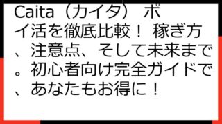 Caita(カイタ) ポイ活 完全ガイド: 徹底比較であなたのポイ活ライフを最大化! Caita(カイタ)でのポイ活に興味をお持ちのあなたへ、この記事では、Caita(カイタ)でのポイ活を徹底的に解説します。 仕組みから効率的な稼ぎ方、そし...