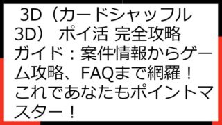 Card Shuffle 3D(カードシャッフル3D) ポイ活 完全攻略ガイド:案件情報から効率的な進め方まで Card Shuffle 3D(カードシャッフル3D)でポイ活をしたいあなたへ、本記事では、最新の案件情報から、ゲーム攻略の基本...