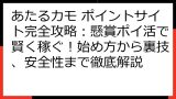 この記事を読めば、あたるカモのすべてがわかり、安心してポイ活を始められるはずです。