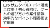 最新情報に基づき、Bloom Tileでのポイ活を最大限に楽しむための情報を提供します。